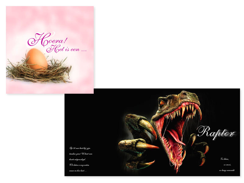 Softwear BV ontwikkelt software voor de kledingindustrie. De geboorte van de nieuwe systeemsoftware ‘Raptor’ is met een geboortekaartje als teaser geïntroduceerd.