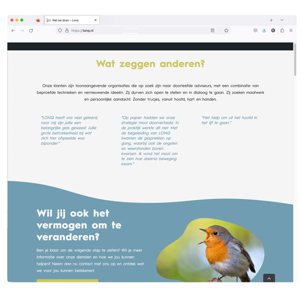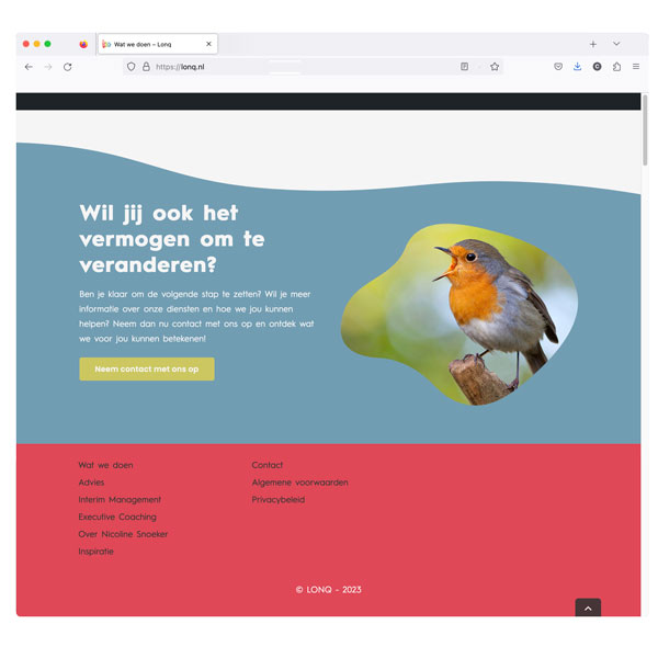 Website LONQ Ontwerp voor de website, gebouwd in WordPress waardoor de eindgebruiker zelf het onderhoud kan gaan doen. Opdrachtgever: LONQVormgeving & Realisatie: Christien Munters Lees meer artikelen Vorig berichtCampagne SoFine Volgend berichtBoekje Geboren in het seizoen van de kersen